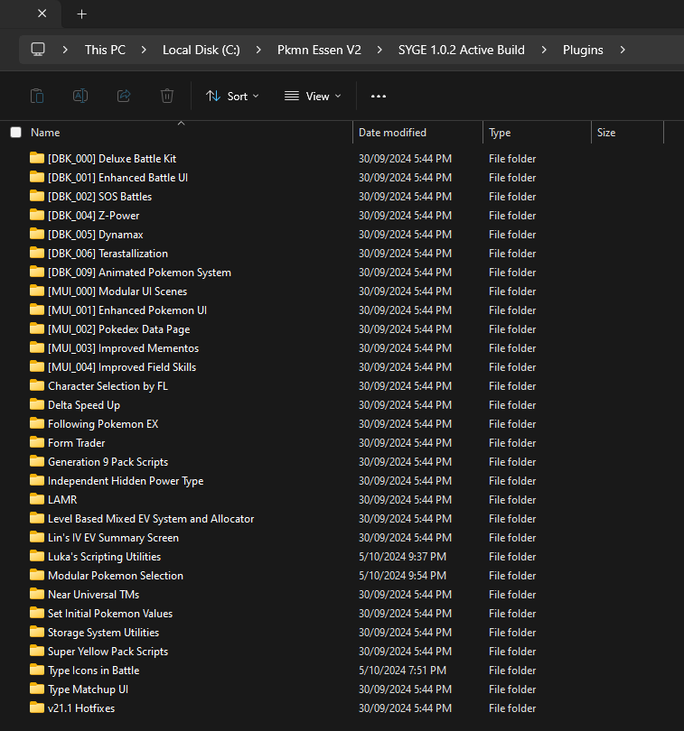 And these is a folder list of the other plugins I am using. I don't know if any of these are conflicting with Modular Pokemon Selection: