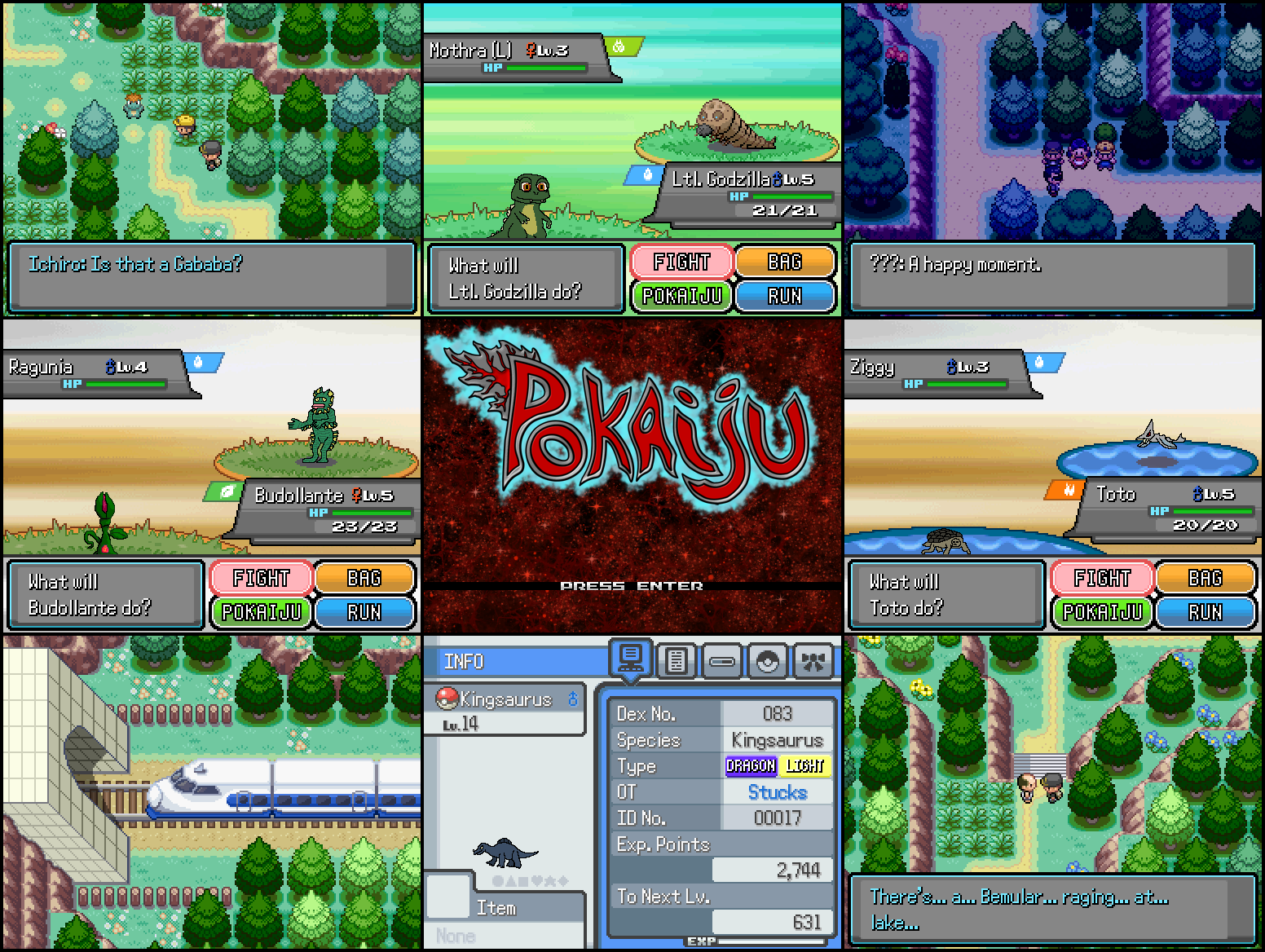 A game that mixes traditional Pokémon gameplay with characters and creatures from Godzilla and other kaiju media!